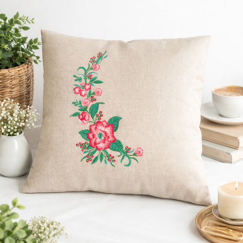 Cuscino Decorativo 45×45 cm – Ricamo Floreale Rosa e Verde